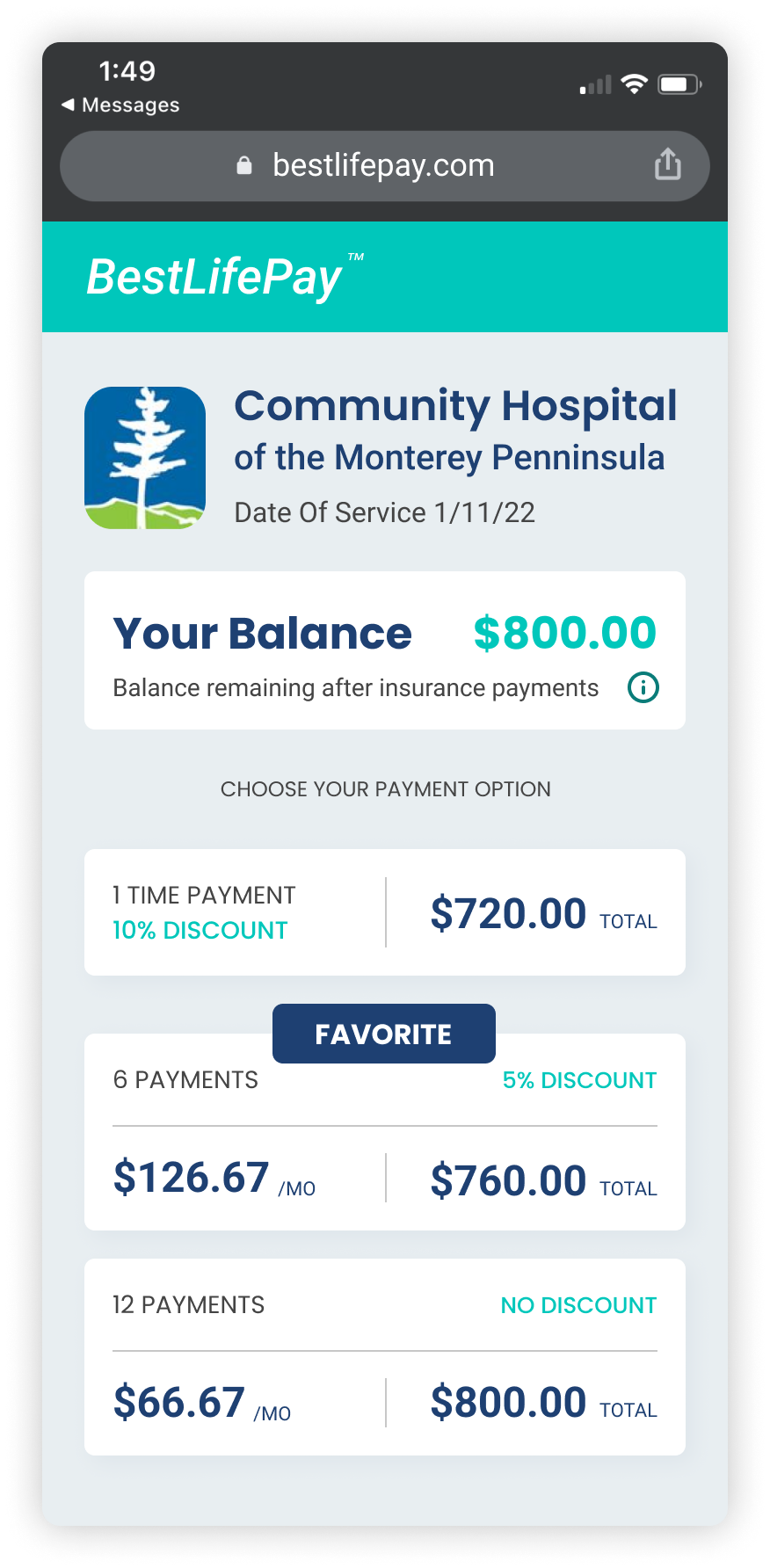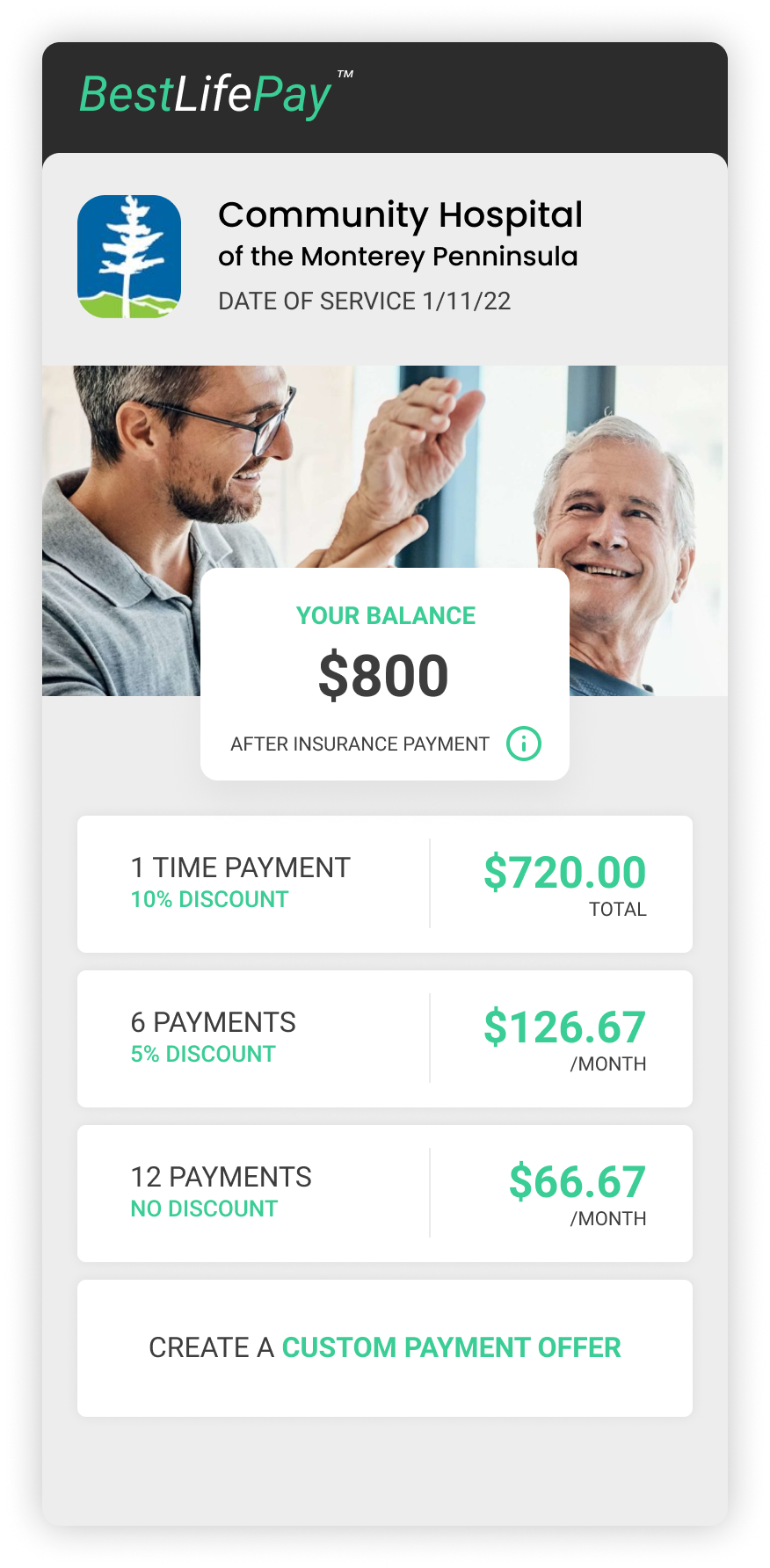 2) Pay their bill in full, choose payment plans offered by the medical facility or create a custom affordable payment plan