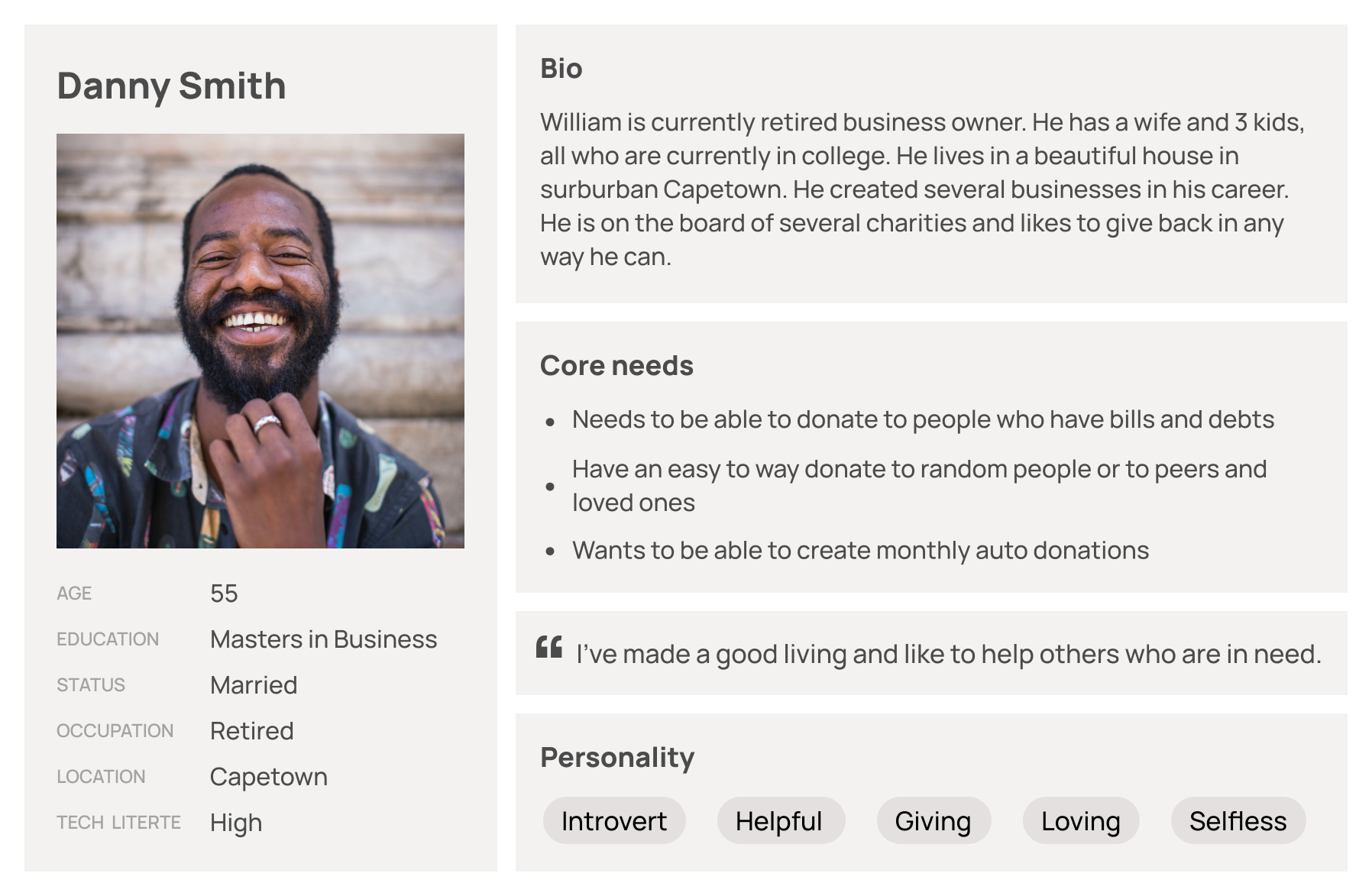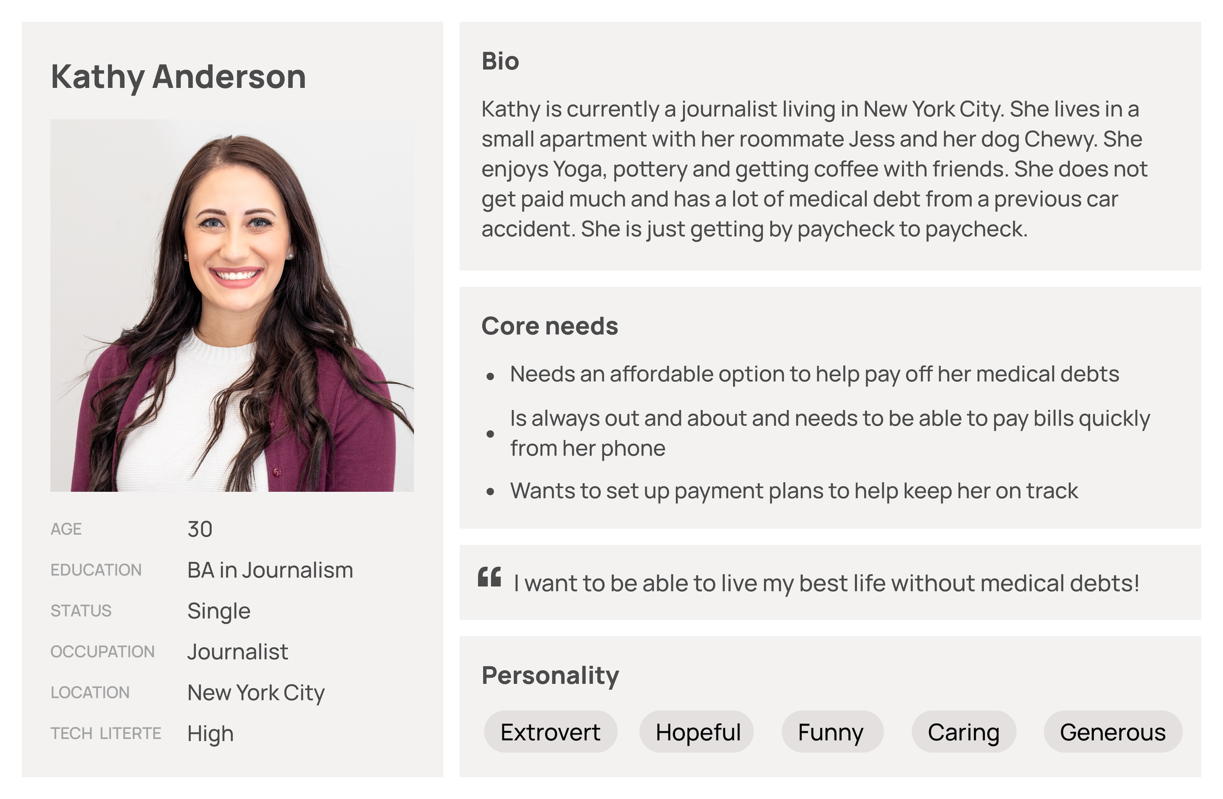 The following artifacts were created and continually referenced to help inform and guide our design process by understanding user needs, behaviors, and the overall user journey.