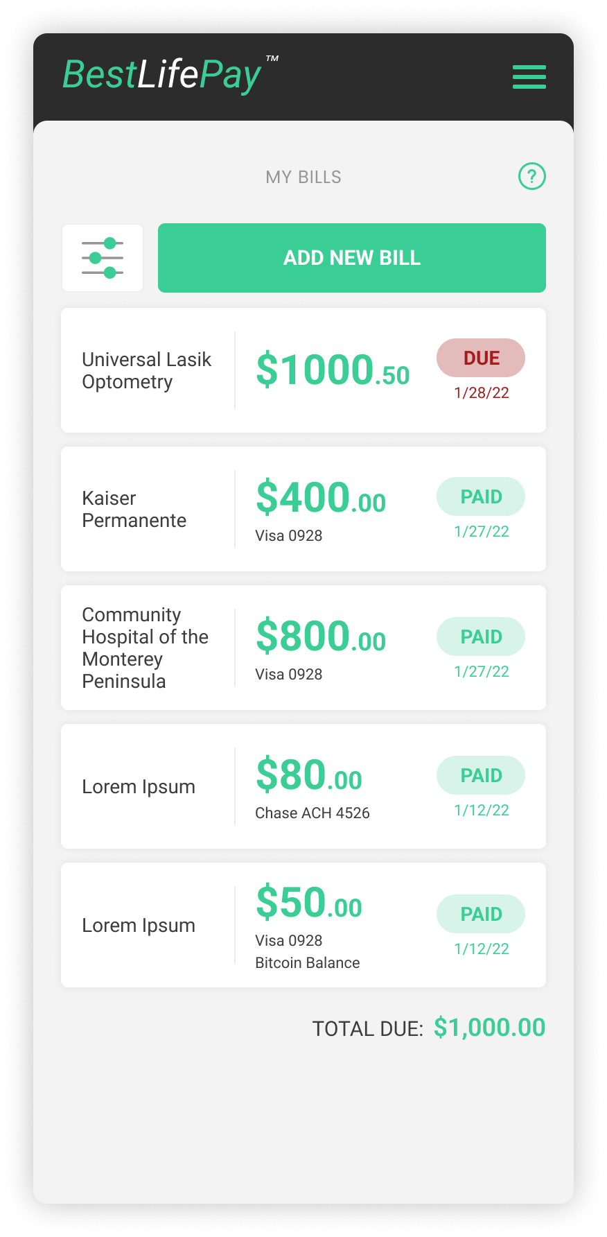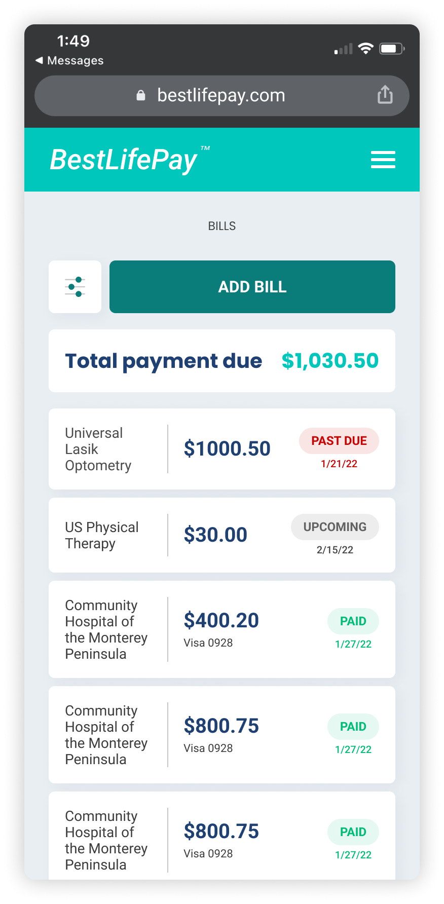 Assist users in maintaining their financial health by offering a means to settle their medical bills to prevent debt.