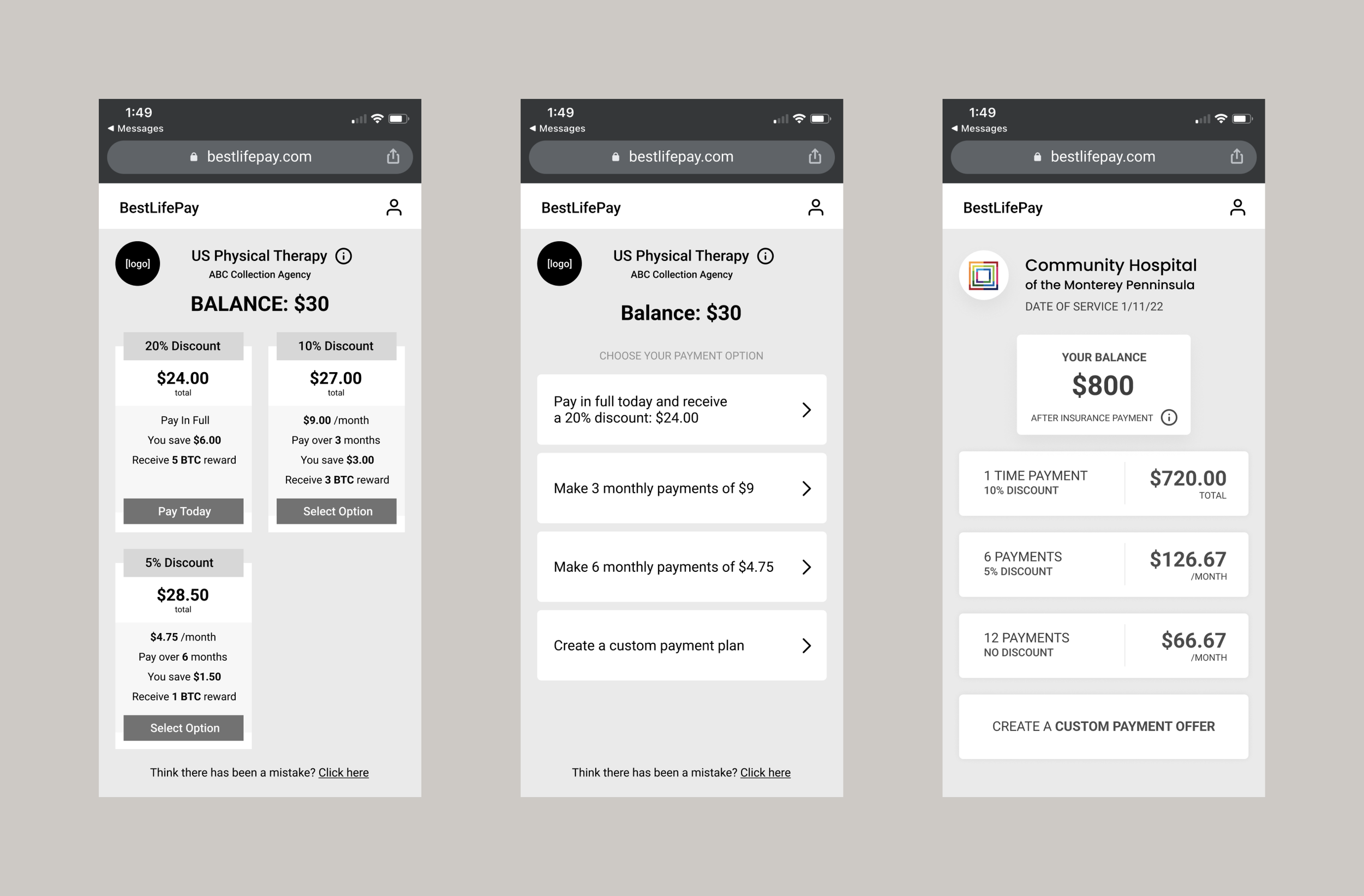 We wanted to look into different use cases: what happens when a user already has a BLP (BestLifePay) account vs. if they don’t?