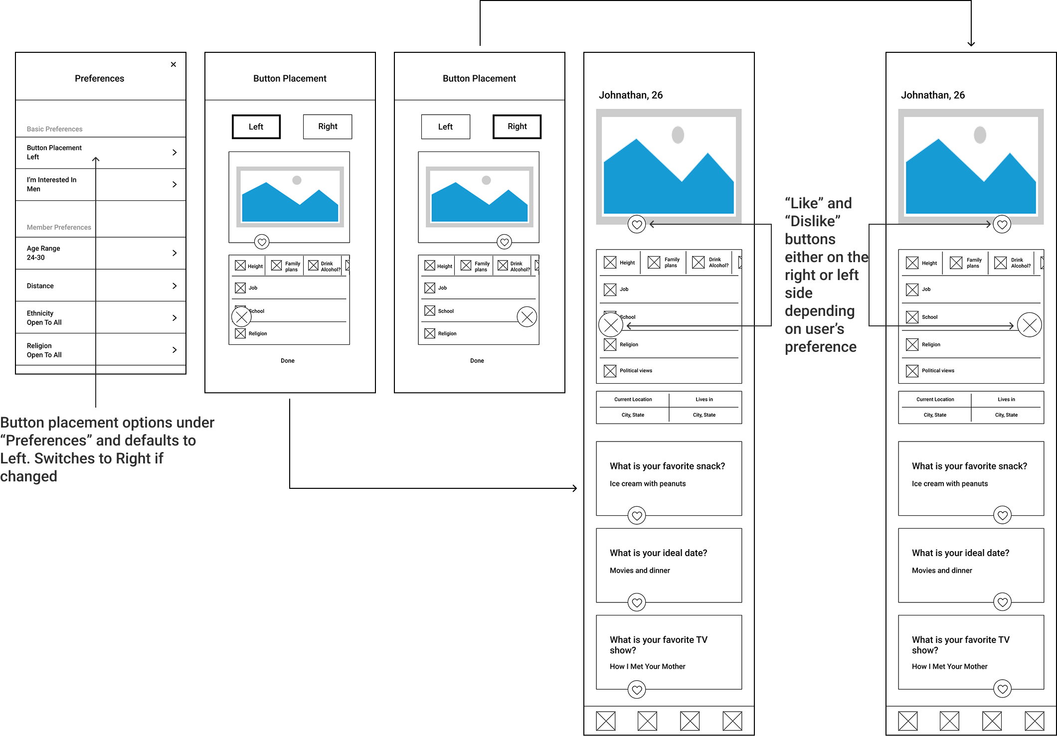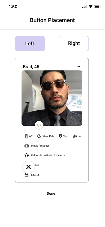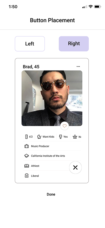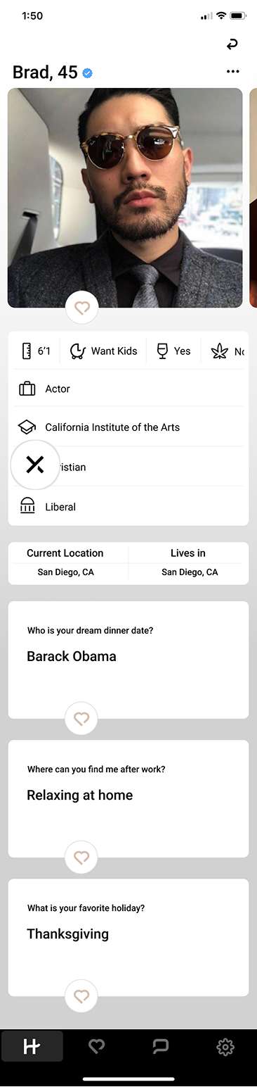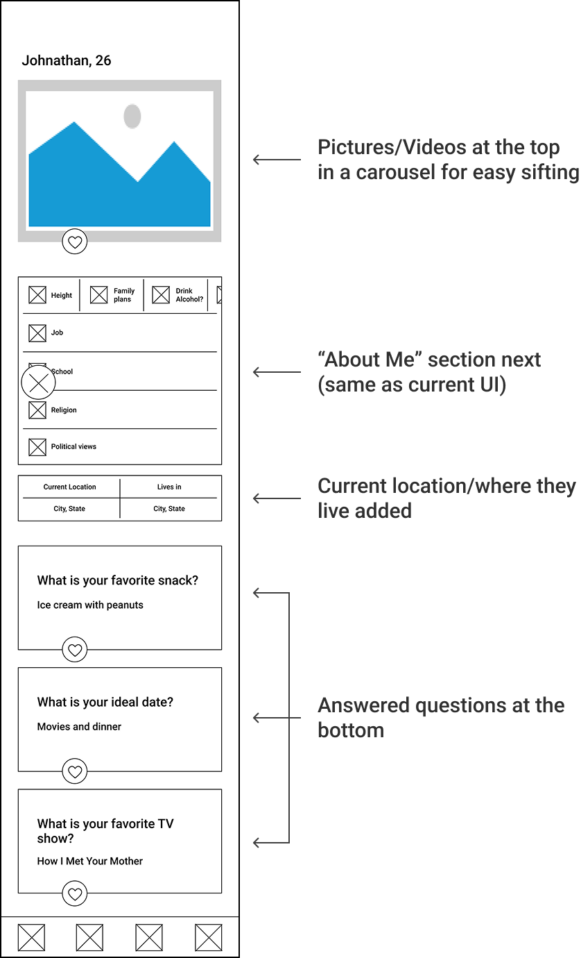 Although Hinge is a popular dating app, through research it was discovered that most users only sometimes use it. 3 main problems were discovered: the hierarchy of content on each candidate’s profile, the lack of a profile verification system/feature and the location of the “Like” and “Dislike” CTA.